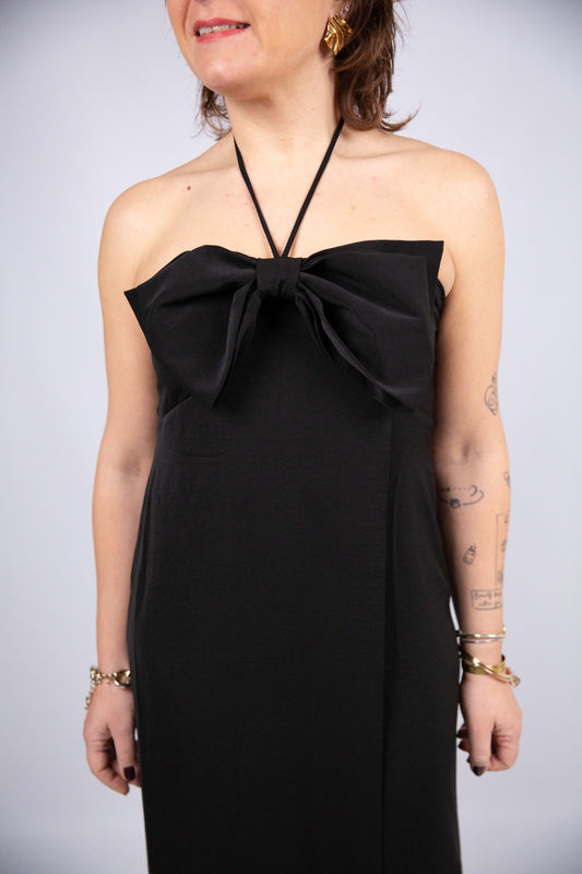 Compania fantastica abito nero con fiocco e laccetti al collo