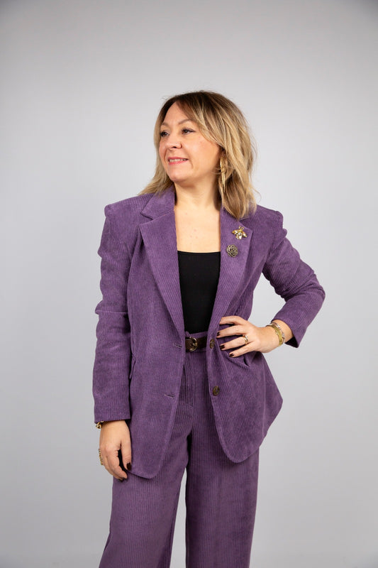 Motel tailleur a coste di velluto con spille