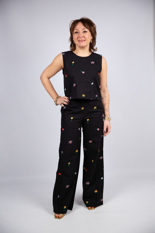 Wild pony top smanicato in cotone con bordi decorati