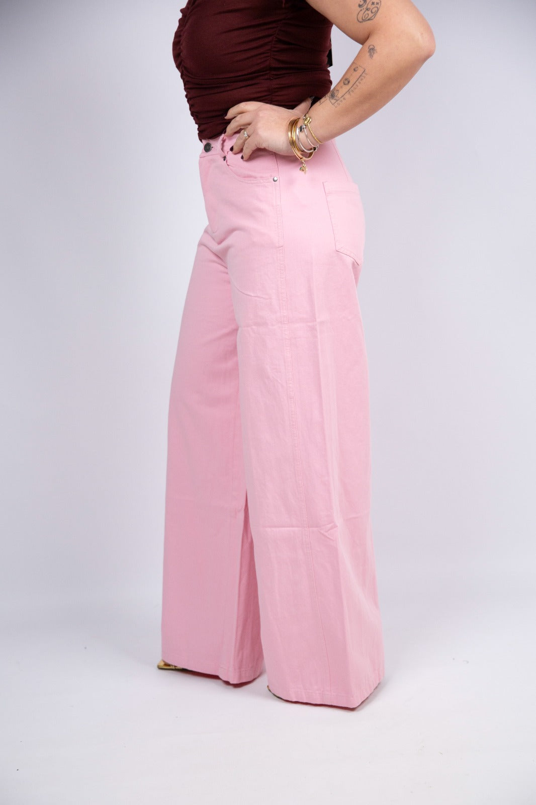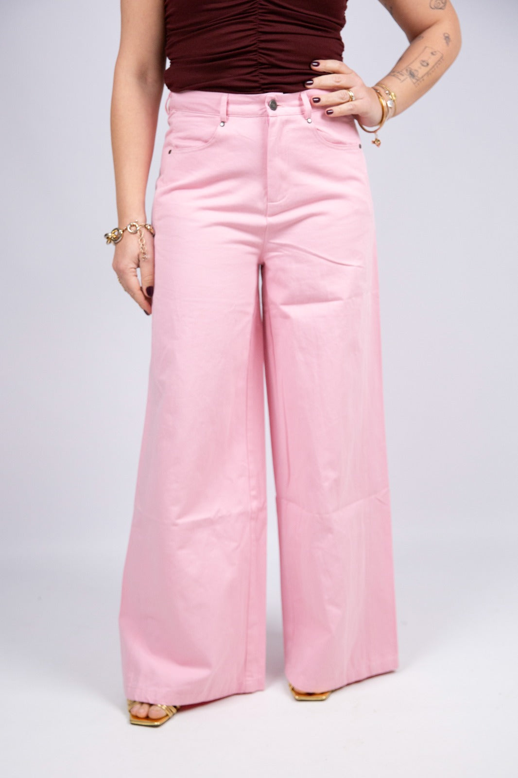 Compania fantastica pantalone palazzo rosa in cotone