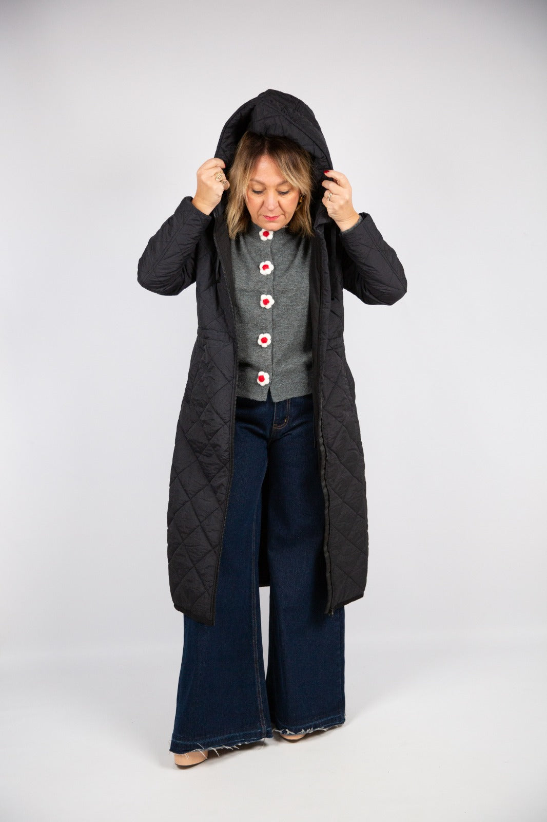 Compania fantastica Trampuntino Nero lungo con cappuccio
