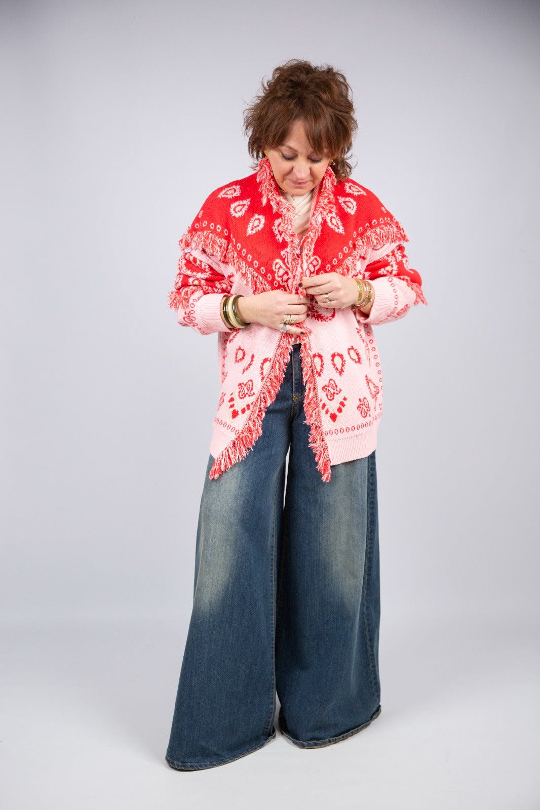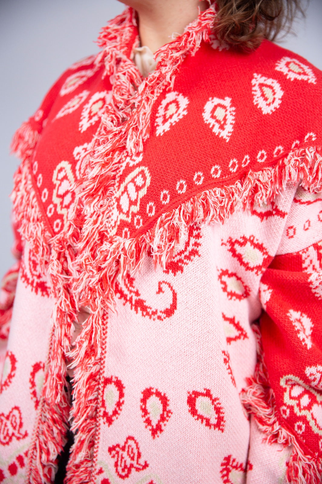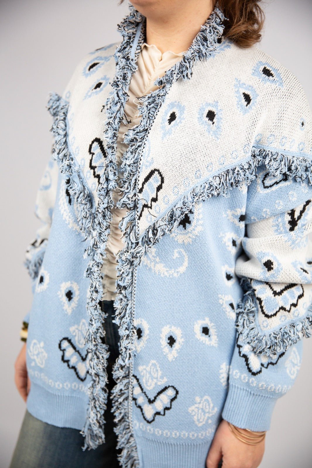 Bomber in maglia con raffinata fantasia paisley, un capo originale e ricercato che unisce comfort e stile. La linea è studiata per risultare estremamente donante e valorizzare la figura, mantenendo allo stesso tempo una vestibilità comoda e versatile, perfetta per completare tanti look diversi. Il peso della maglia lo rende ideale da indossare come capospalla nelle mezze stagioni o nelle giornate più fresche, sostituendo con eleganza la classica giacca.